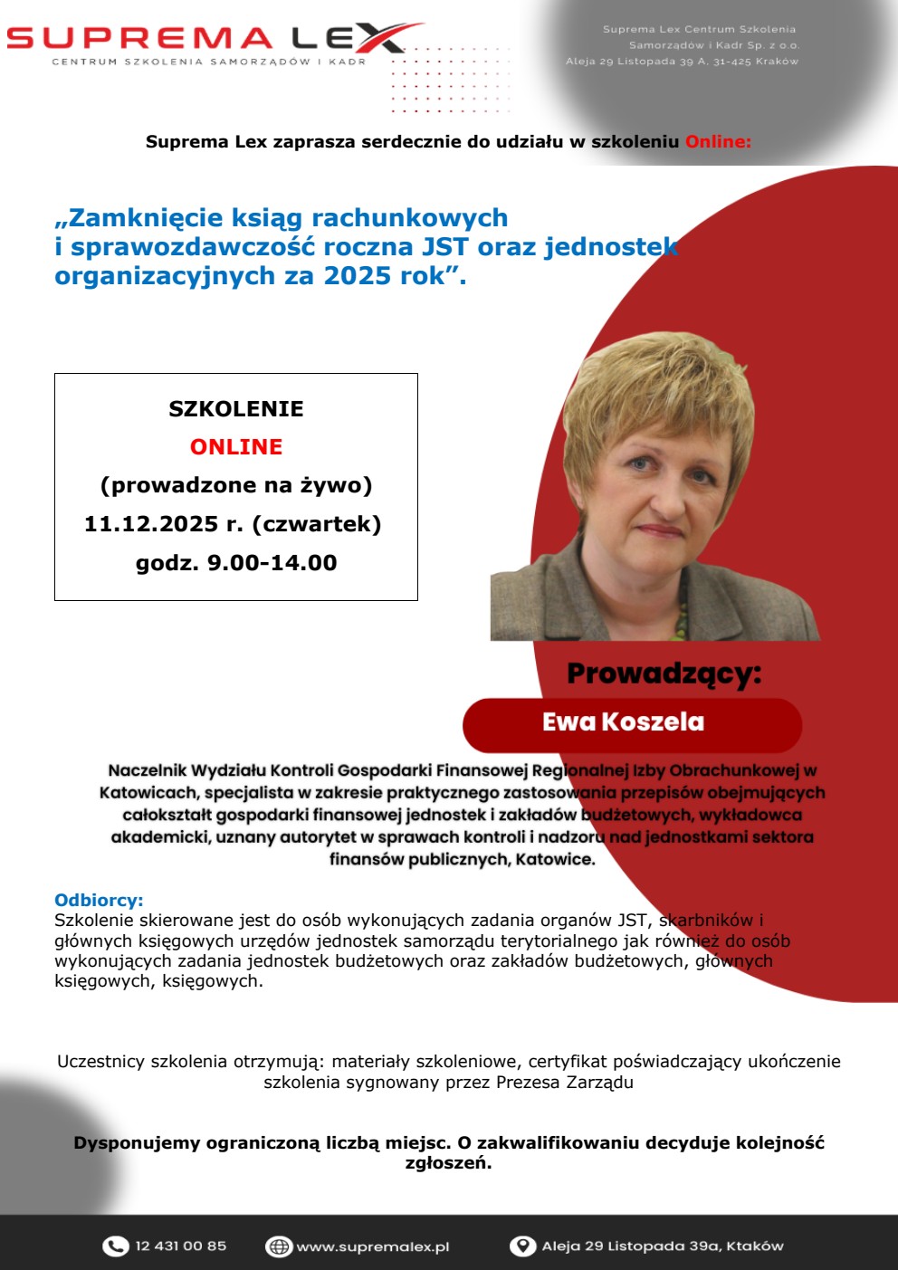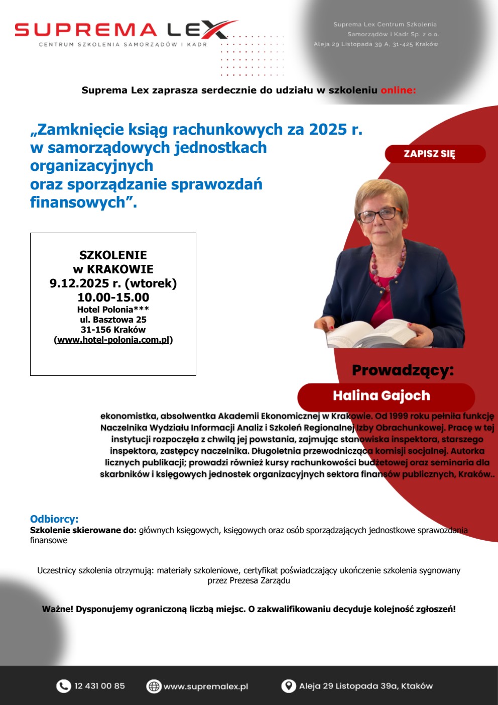 Zamknięcie ksiąg rachunkowych i sprawozdawczość roczna JST oraz jednostek organizacyjnych za 2025 rok